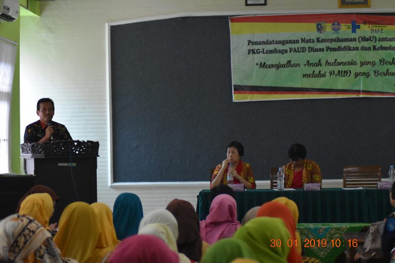 Setelah penandatangan MoU dengan 31 Lembaga dampingan selesai, Ibu Femilya Putri, S.Si., M.M selaku Project Manager AMURT Indonesia menyampaikan rincian program AMURT Indonesia periode 2019-2022 kepada seluruh peserta yang hadir tentang bentuk program yang dijalankan bersama PKG seluruh Kecamatan, program pembentukan KPP (Komunitas Peduli PAUD) yang bekerjasama dengan desa, dan program peningkatan kualitas pendidik dan lembaga PAUD.
