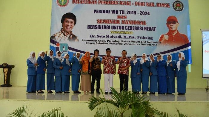 Sejumlah guru TK yang tergabung dalam Ikatan Guru Taman Kanak – Kanak Indonesia (IGTKI ) – PGRI Kabupaten Demak mengadakan Pelantikan pengurus Kabupaten IGTKI PGRI Demak Periode VIII Tahun 2019 – 2014.Pelantikan Pengurus dKabupaten dilantik oleh Ibu Endang Sundari dari pengurus Provinsi Jawa Tengah. Untuk pelantikan Pengurus Kabupaten IGTKI PGRI Demak Periode VIII Tahun 2091-2024 kali ini di adakan seminar Nasional yang bertemakan “Bersinergi untuk Generasi Hebat “ yang disampaikan oleh Kak Seto dan Kak Martutik dan diselenggarakan pada Hari Selasa, 17 Agustus 2019 di Gedung IPHI Kabupaten Demak dan diikuti oleh ± 1200 pendidik Taman Kanak – kanak Kabupaten Demak. Kegiatan ini bertujuan agar pengurus Kabupaten IGTKI PGRI Demak yang baru sanggup menjalankan tugasnya masing-masing dengan harapan dapat memberikan dukungan, support melalui wadah organisasi IGTKI PGRI kepada guru-guru TK Kabupaten Demak. Sehingga dapat memberikan pelayanan Pendidikan kepada anak usia dini dengan maksimal untuk dapat mencetak anak-anak yang berakhlak mulia, berkarakter, cerdas sehat dan ceria.