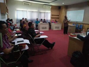 DINDIKBUD-20/11/2019 Semarang– Plt. Kepala Dinas Pendidikan dan Kebudayaan Drs. Eko Pringgo Laksito, M.Si dan Tim PPID DINDIKBUD Kabupaten Demak  menyampaikan presentasi dalam uji publik keterbukaan badan publik dihadapan para panelis, Selasa (19/11) di Fakultas Hukum Universitas Sultan Agung.