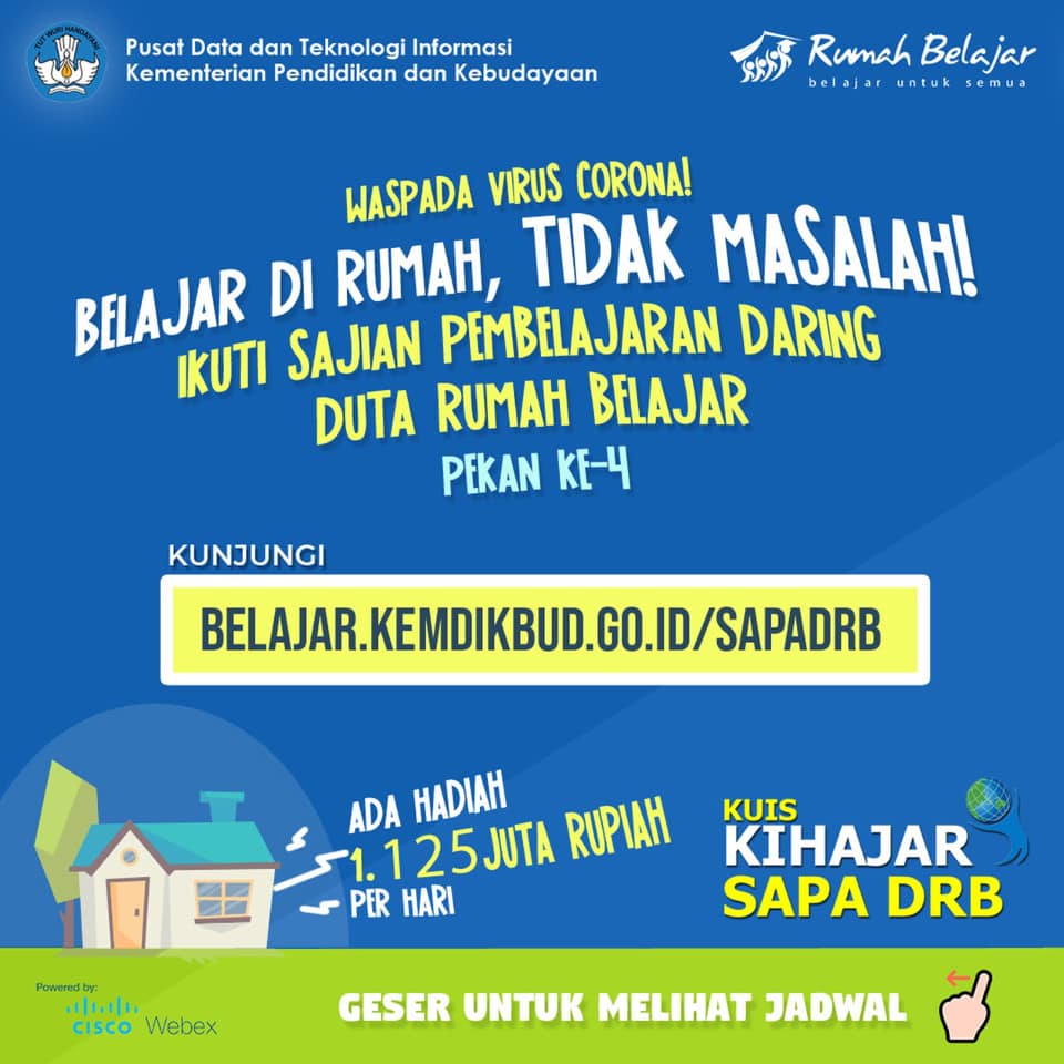 Simak materinya karena di pekan ini akan ada sesi Kuis #KihajarSapaDRB juga, sehingga kalian berkesempatan juga untuk mendapatkan hadiah berupa pulsa yang tentunya dapat kalian gunakan untuk belajar daring juga