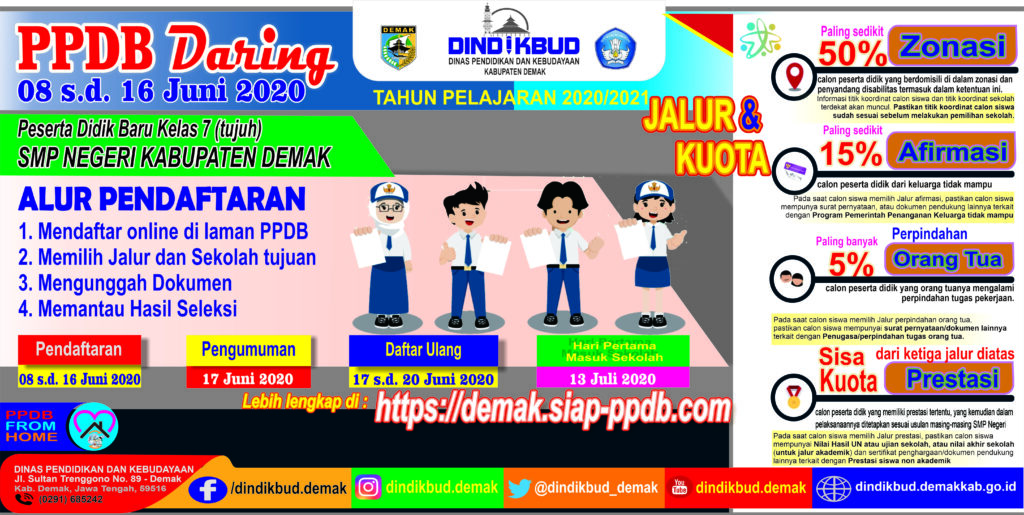 Pendaftaran Peserta Didik Baru Daring Jenjang SMP Negeri di Kabupaten Demak menggunakan Jalur & Kuota Sebanyak 4 yaitu :