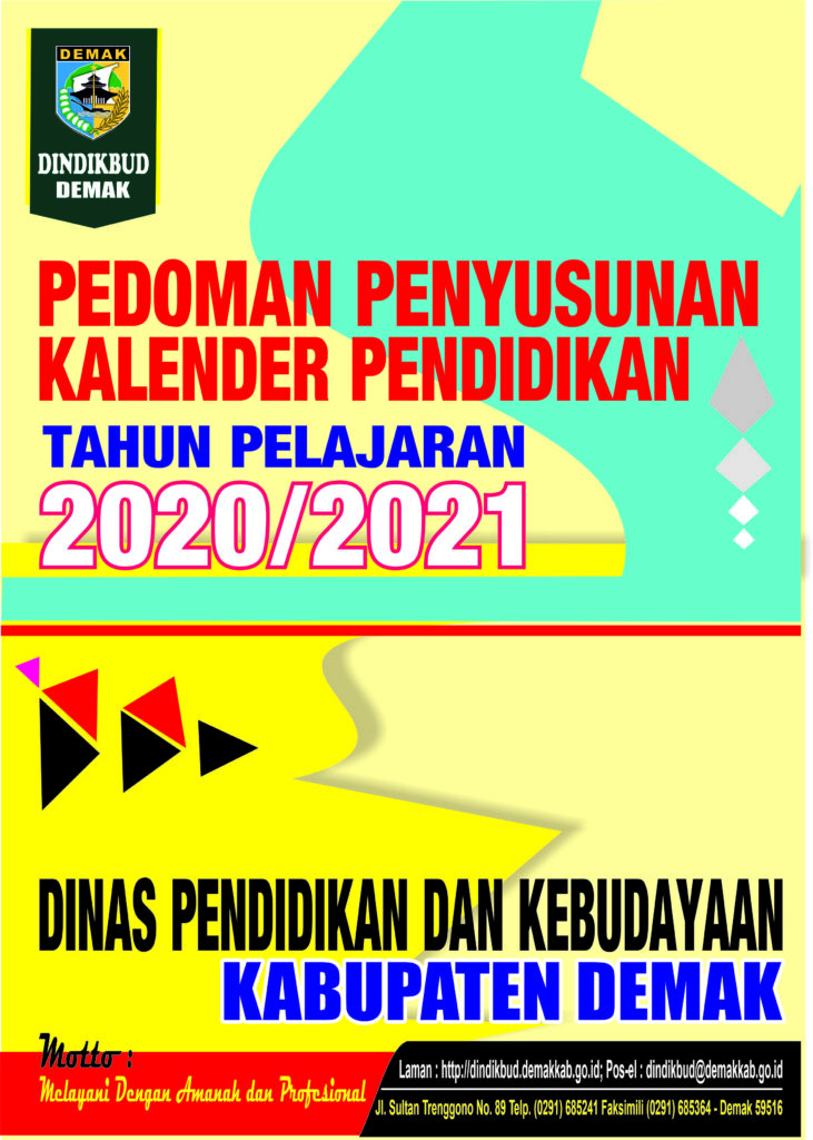 DINDIKBUD-14/07/2020 Kalender Pendidikan Tahun Pelajaran 2020/2021 Jenjang TK, SD dan SMP Kabupaten Demak berdasarkan Keputusan Kepala Dinas Pendidikan dan Kebudayaan Kabupaten Demak NOMOR : 420/ 2760 /2020 TENTANG PEDOMAN PENYUSUNAN KALENDER PENDIDIKAN TAHUN PELAJARAN 2020/2021 dapat di lihat di bawah ini :