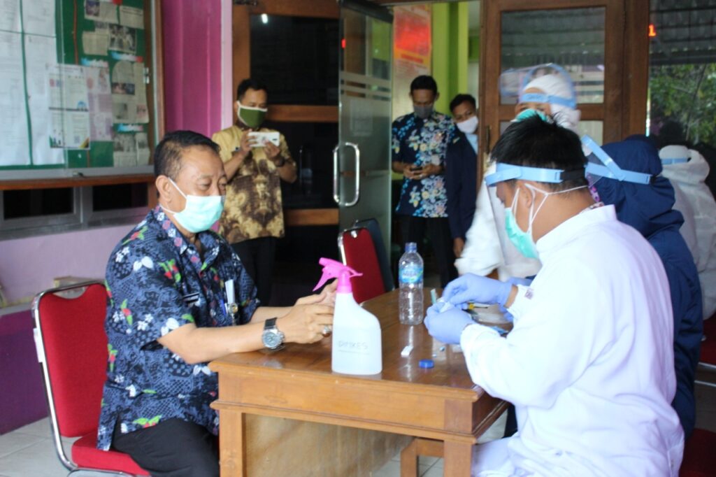 DINDIKBUD-22/07/2020 Dinas Pendidikan dan Kebudayaan Kabupaten Demak bekerjasama dengan Dinas Kesehatan Kabupaten (DKK) dengan pelaksana teknis dari Dinas Kesehatan Kabupaten Demak, mengadakan Rapid Tes bagi semua Pegawai termasuk Kepala Dinas, Sekretaris Dinas dan Pejabat Struktural serta jajaranya, Rapid test dilaksanakan di Halaman DINDIKBUD, kegiatan Rapid test merupakan metode skrining awal untuk mendeteksi antibodi, yang diproduksi oleh tubuh untuk melawan virus Corona. Antibodi ini akan dibentuk oleh tubuh bila ada paparan virus Corona. Prosedur pemeriksaan rapid test dimulai dengan mengambil sampel darah dari ujung jari yang kemudian diteteskan ke alat rapid test. Selanjutnya, cairan untuk menandai antibodi akan diteteskan di tempat yang sama. Hasilnya akan berupa garis yang muncul 10–15 menit setelahnya.