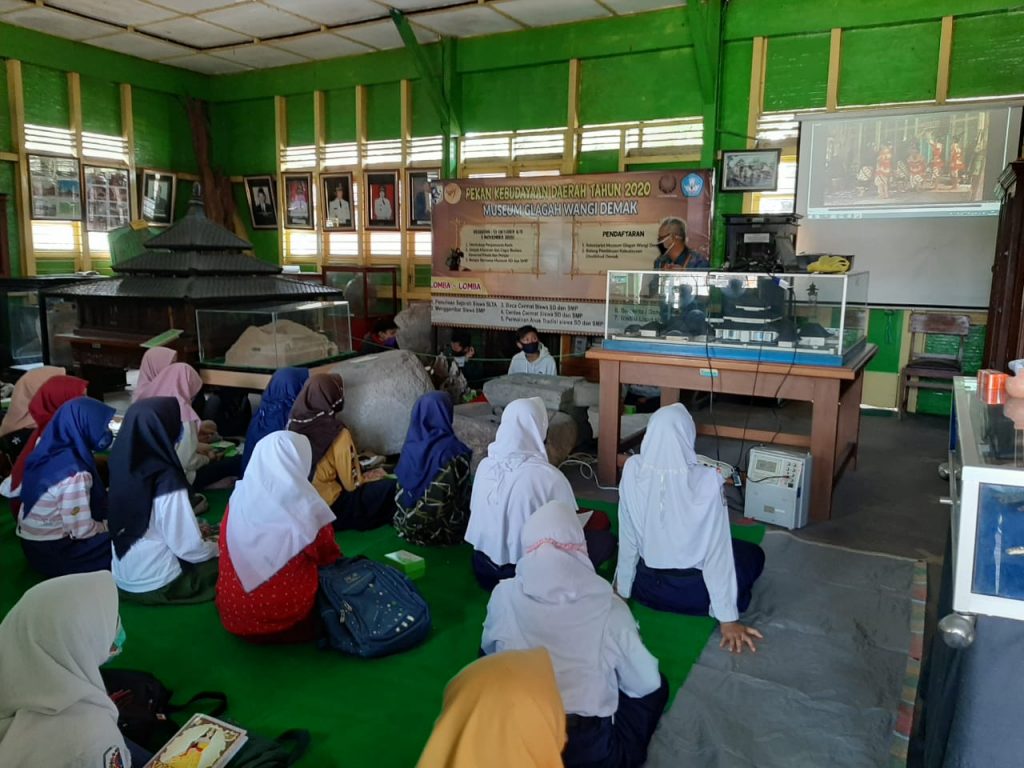 DINDIKBUD-13/10/2020 Dinas Pendidikan dan Kebudayaan Kabupaten Demak, menyelenggarakan Kegiatan Belajar Bersama di Museum Glagah Wangi Kabupaten Demak, yang di laksanakan untuk pelajar SMP/Sederajat setiap hari Selasa dan SD setiap hari Rabu, dalam Kegiatan Tersebut sebagai Pemandu Kegiatan Bapak AHMAD WIDODO selaku Plt. UPTD Museum, menyampaikan bahwa Tujuan dari kegiatan ini adalah :