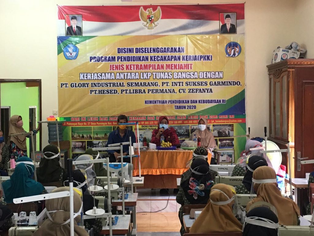 DINDIKBUD-14/10/2020 LKP. Tunas Bangsa merupakan salah satu Lembaga Kursus yang menyelenggarakan Pendidikan Ketrampilan Menjahit dan Tata Busana, Lembaga yang terletak di Jl. Raya Pamongan Buyaran No. 37 Kec. Guntur Kab. Demak Provinsi Jawa Tengah, pada tahun 2020 mendapat Bantuan dari Pemerintah Pusat untuk melaksanakan Pendidikan kecakapan kerja (PKK) untuk  ketrampilan menjahit dan tata busana.