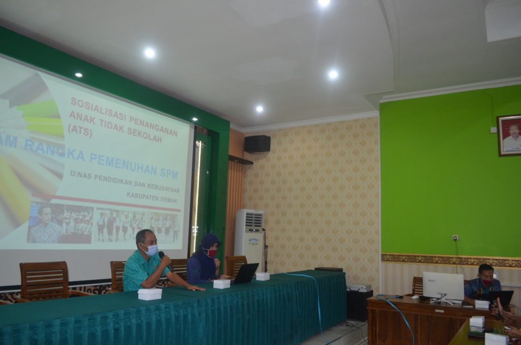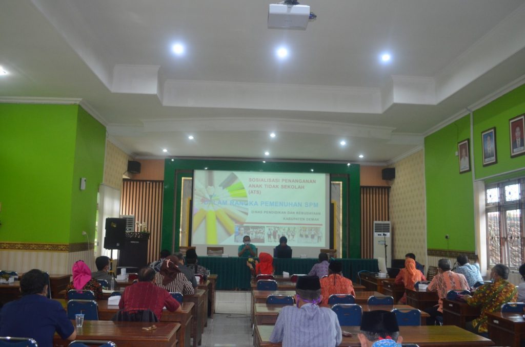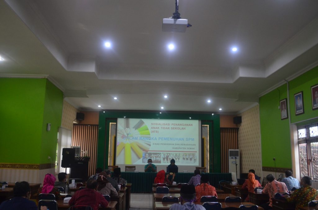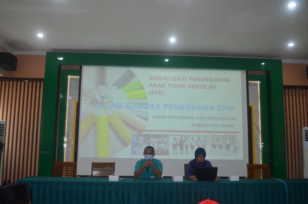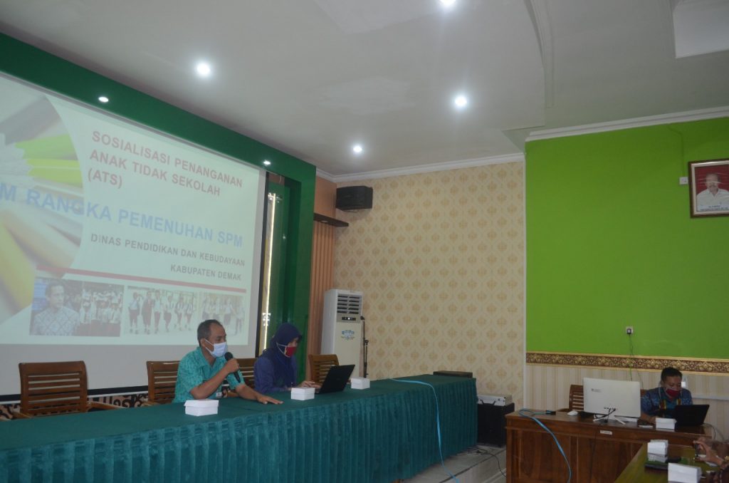 Dalam kegiatan tersebut Beliau menyampaikan pentingnya penanganan Anak Tidak Sekolah (ATS) untuk memenuhi SPM di Kabupaten Demak. Dinas Pendidikan dan Kebudayaan sudah mengalokasikan anggaran anak tidak sekolah (ATS) melalui APBD dengan Kegiatan “Ayo Sekolah Kembali”, agar bisa kembali bersekolah,” ungkap Ridwan selaku Kepala Bidang Pembinaan SD dan SMP saat menyampaikan dalam pertemuan tersebut.