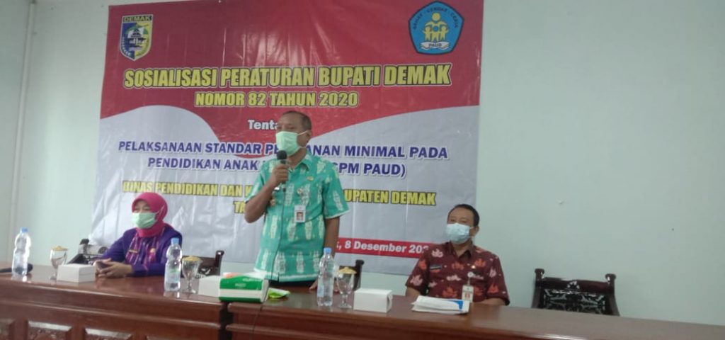 Kegiatan Sosialisasi Peraturan Bupati Demak Nomor 82 Tahun 2020 tentang Sosialisasi Standar Pelayanan Minimal dan Sosialisasi Penuntasan Ikut PAUD Pra Sekolah Dasar ini salah satunya menjadi wadah sosialisasi kepada masyarakat dan instansi terkait, akan adanya SPM mengenai PAUD tersebut. Dengan terbitnya SPM ini, komimen daerah terhadap pentingnya pendidikan anak usia dini akan semakin meningkat.