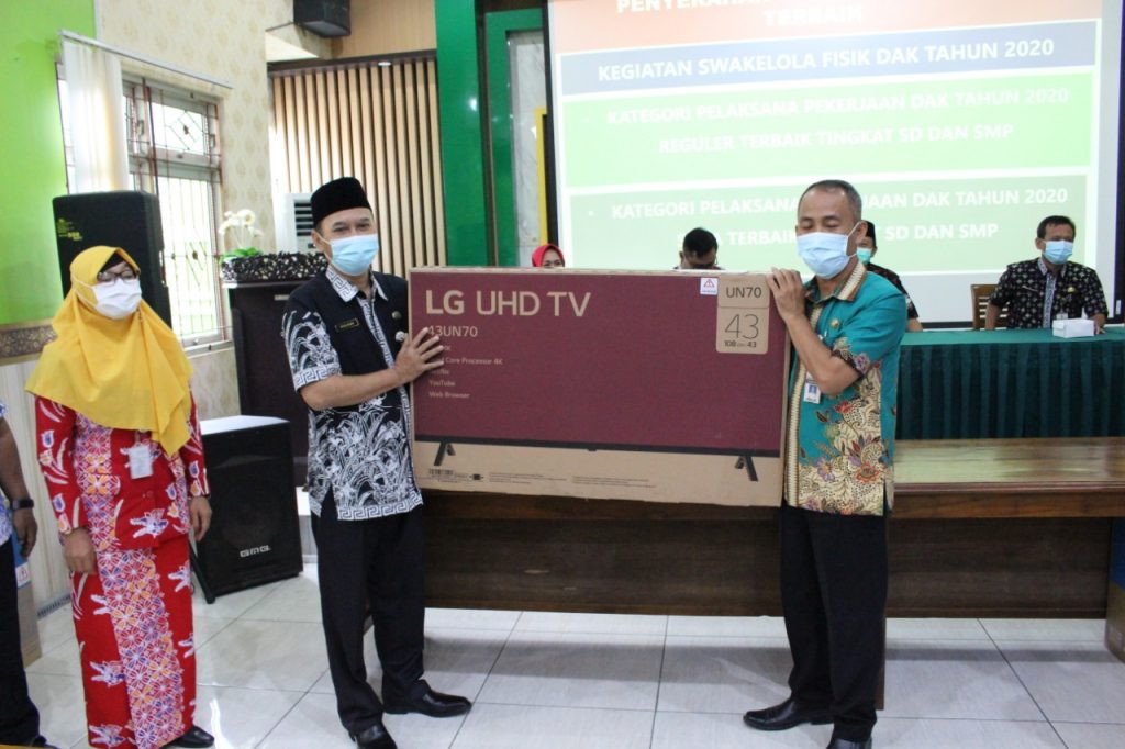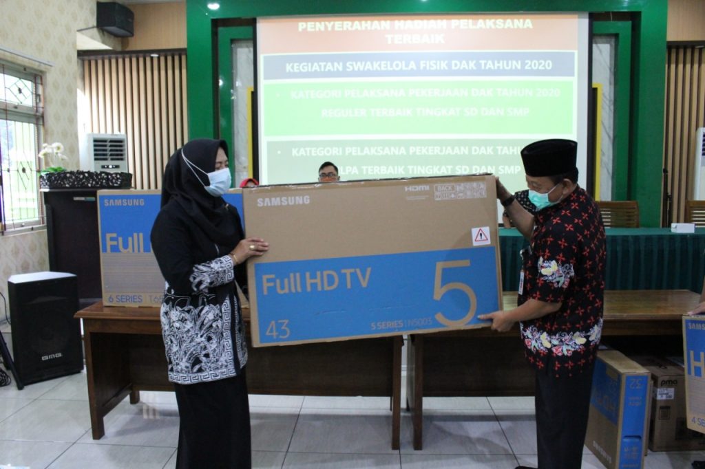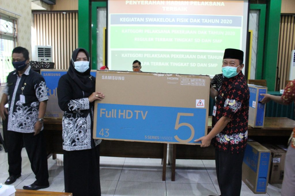 DINDIKBUD-03/02/2021 Dinas Pendidikan dan Kebudayaan Kabupaten Demak, menyelenggarakan Kegiatan Penyerahan Hadiah Kepada Sekolah yang telah melaksanakan Kegiatan Pembangunan dari Anggaran DAK, yang di laksanakan di Aula Budi Utomo Dindukbud Kab. Demak. Dalam Kegiatan tersebut Drs. Eko Pringgo Laksito, M.Si Selaku Plt. Kepala Dinas Pendidikan dan Kebudayaan di dampingi Sekretaris Dinas Drs. SUBKHAN, M.M. menyampaikan bahwa pemberian hadiah ini dalam rangka memberikan motivasi dan semangat bagi penerima bantuan DAK tahun 2020 yang dilaksanakan secara swakelola, supaya tercapai kualitas hasil pekerjaan yang memuaskan, maka para pelaksana DAK telah bersepakat untuk mengadakan pemilihan pelaksana kegiatan fisik DAK terbaik di tingkat SD maupun SMP.