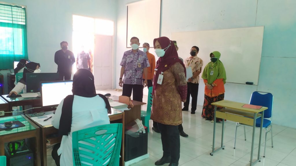 DINDIKBUD-16/09/2021 BUPATI DEMAK dr. Eisti’anah monitoring seleksi Pegawai Pemerintah dengan Perjanjian Kerja (PPPK) Guru SD dan SMP di Kabupaten Demak Tahun 2021 di SMK Negeri 1 Demak, yang berlokasi di Kelurahan Katonsari Kecamatan Demak, Kamis (16/9/2021).