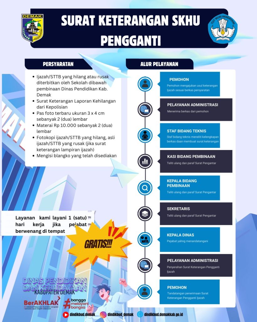 - Layanan Pengajuan Surat Keterangan Pengganti STTB/IJAZAH/DANEM;
