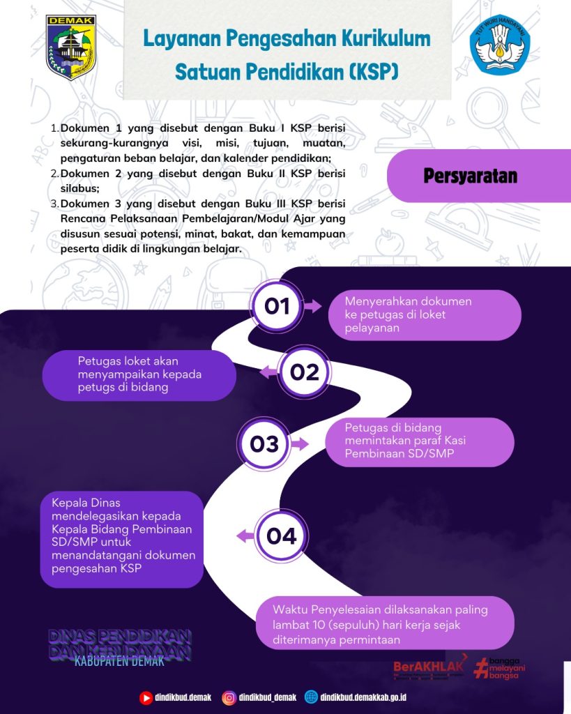 - Layanan Pengajuan Pengesahan Kurikulum Tingkat Satuan Pendidikan (KTSP);
