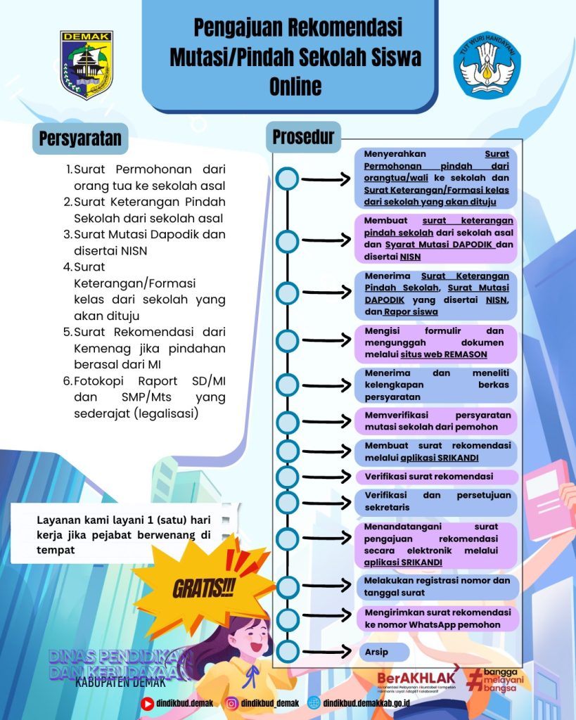 - Layanan Rekomendasi Mutasi /Pindah Sekolah Siswa;