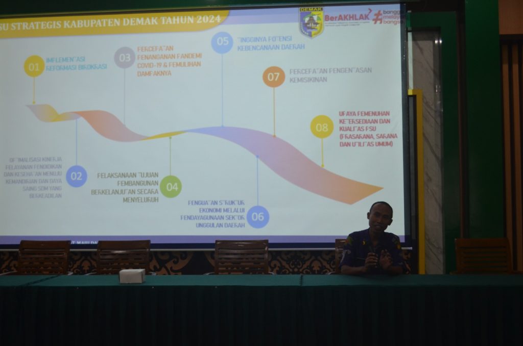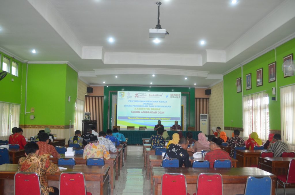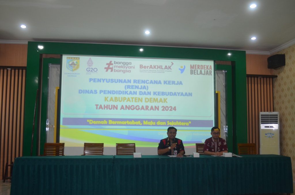 Kegiatan dibuka secara langsung oleh Bapak Haris selaku Kepala Dinas Pendidikan dan Kebudayaan Kabupaten Demak, dalam kesempatan tersebut menyampaik pentingnya sinkronisasi program kegiatan dindikbud, dan dalam rapat ini dimaksudkan untuk sinkronisasi Program, Kegiatan, Sub. Kegiatan dan pagu anggaran dari masing-masing bidang dan membahas penyusunan Renja 2024.