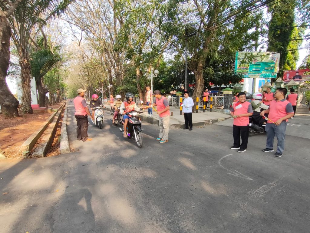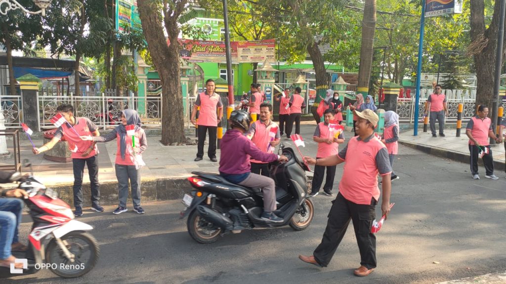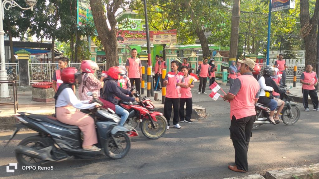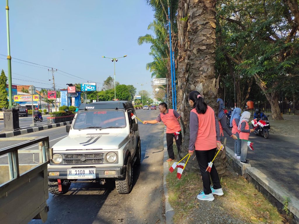 DINDIKBUD-16/06/2023 Dinas Pendidikan dan Kebudayaan Kabupaten Demak melakukan Pembagian Bendera Merah Putih pada hari Jum’at, 16 Juni Tahun 2023 di depan Kantor Dinas yang dipimpin secara langsung oleh HARIS WAHYUDI RIDWAN, AP, M.Si. selaku Kepala Dinas, di ikuti oleh Pejabat, Pelaksana dan Pegawai Dindikbud Kab. Demak dibagikan kepada warga masyarakat yang melintasi di Depan Kantor Dinas Pendidikan dan Kebudayaan Kabupaten Demak, Dalam kesempatan tersebut Beliau menyampaikan bahwa kegiatan ini dalam rangka menyemarakkan Hari Ulang Tahun (HUT) Ke 78 Kemerdekaan Republik Indonesia. Gerakan pembagian bendera merah putih hari ini sebanyak lima ratus lima puluh (550) bendera, yang di awali pada saat apel pagi dan dilanjutkan dengan diserahkan pada masyarakat umum yang sedang berkendara melintas didepan dan sedang menunggu pergantian lampu merah.